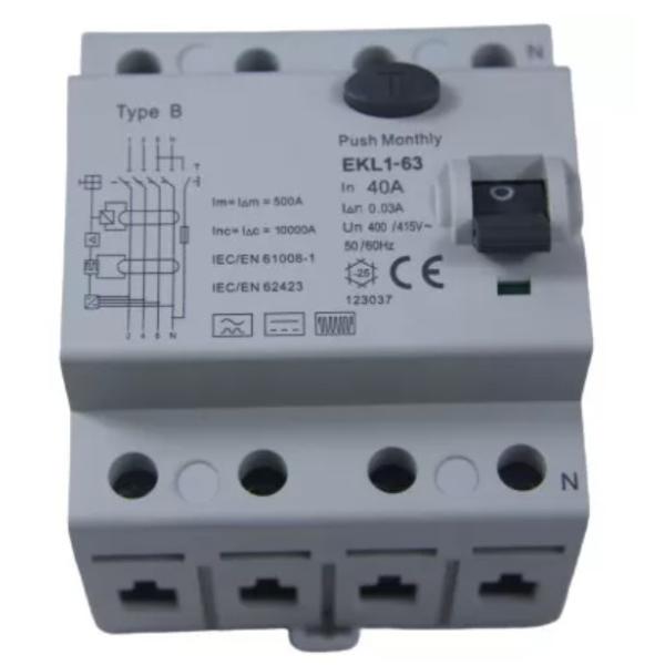 Type B IP20 RCD Circuit Breaker 40A 3 Phase 4 Pole For Wallbox